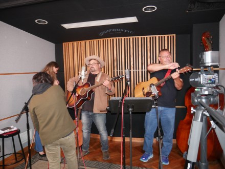 Getting ready for a soundcheck with Patrick Noel Russ & Friends